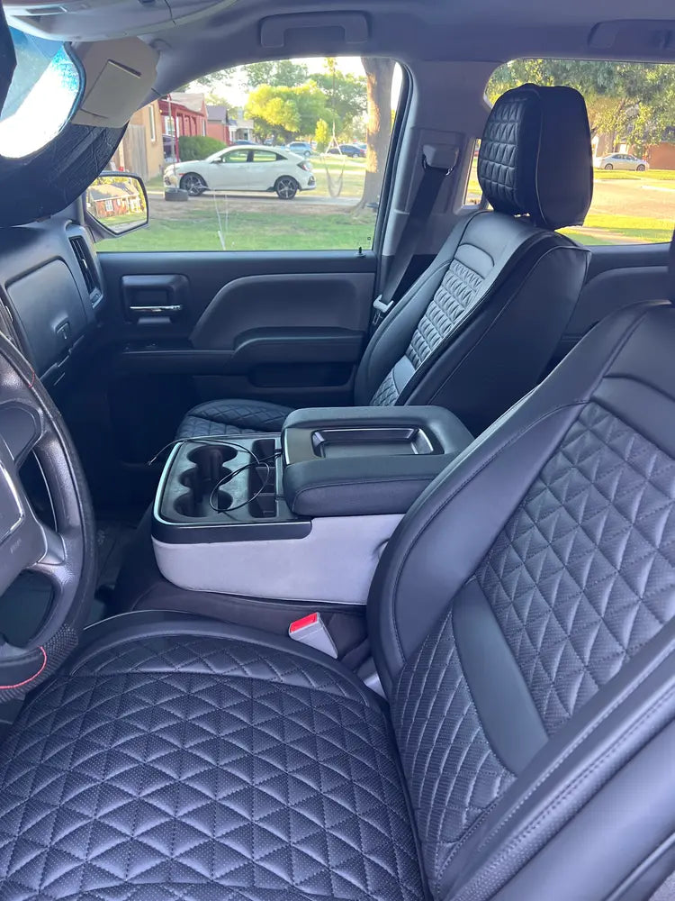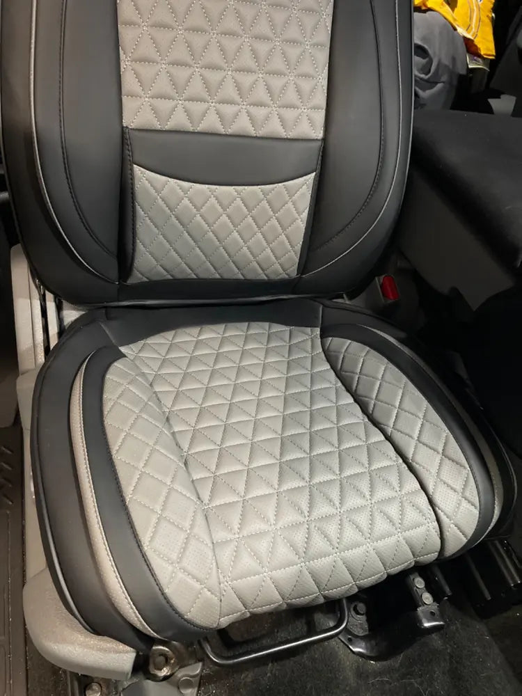 "I am extremely pleased with the seat covers I purchased from Seat Cover Solutions. They fit great in my Ford F-150 and they look even better. I love the way they feel and they protect my seats from spills and stains. Highly recommend!"